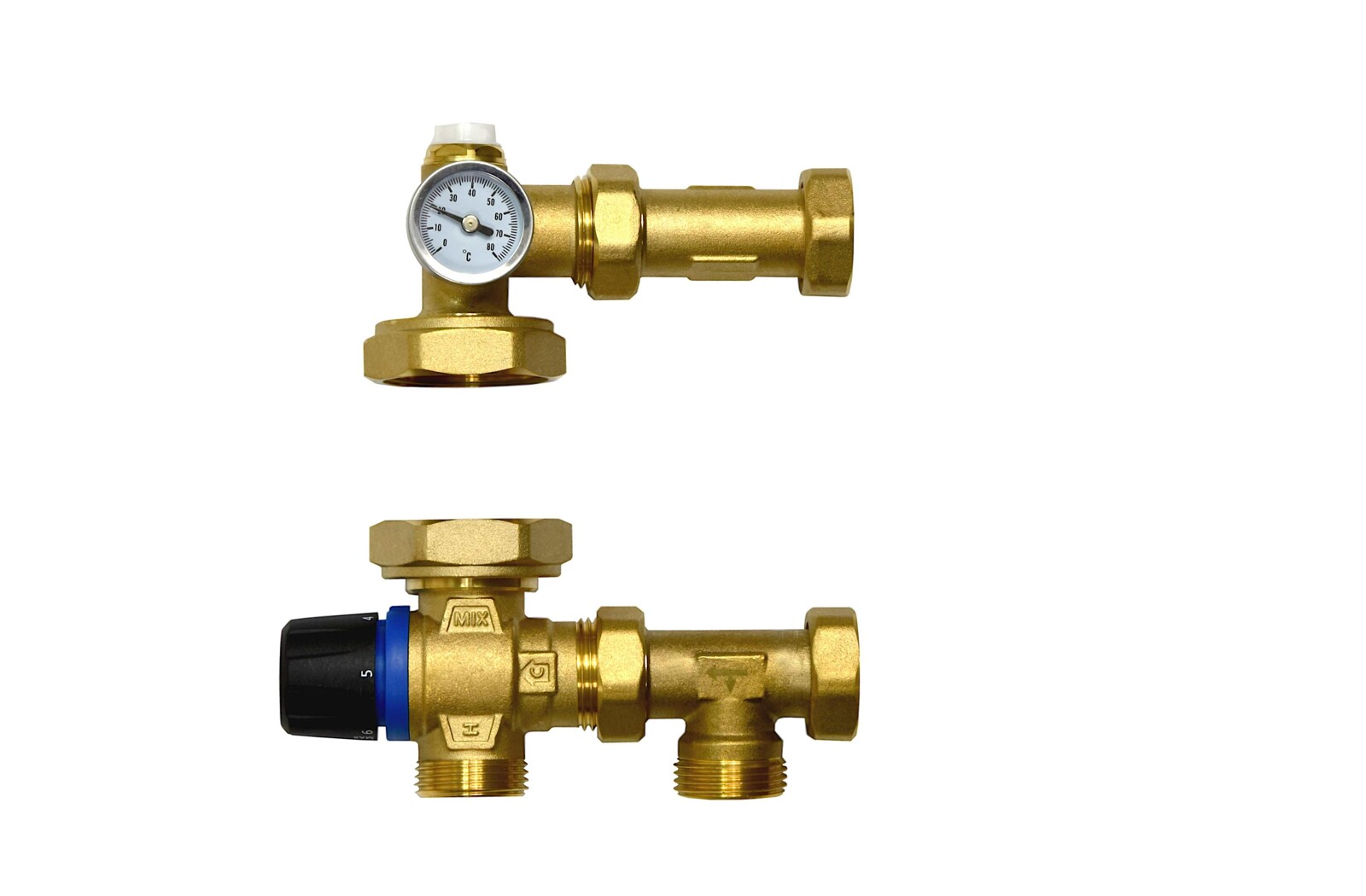 • Grupa która automatycznie dostosuje temperaturę wody podłogówki zgodnie z ustawieniem zaworu oraz zabezpieczy układ przed zbyt dużą temperaturą.