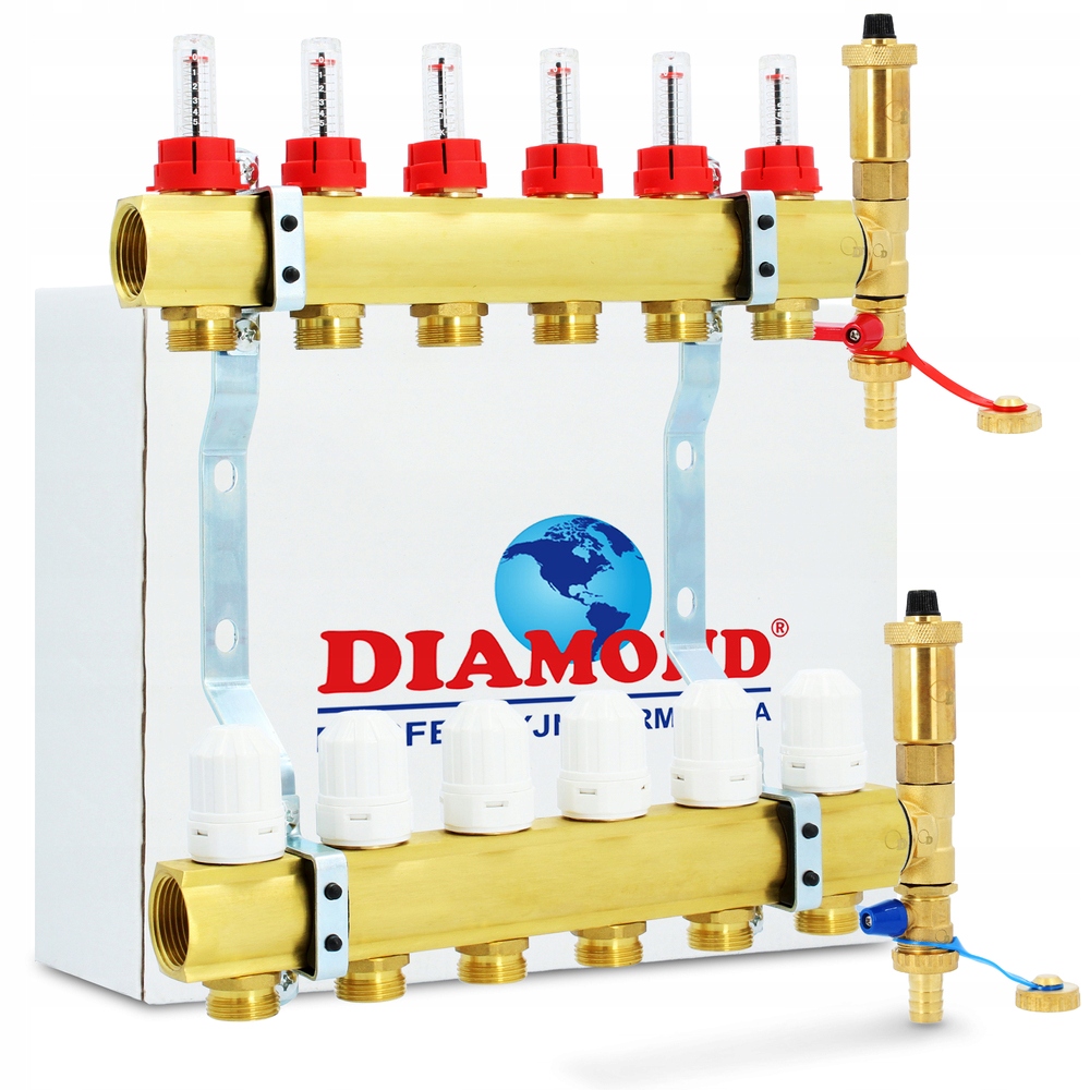 ROZDZIELACZ 6 OBWODÓW OGRZEWANIA PODŁOGOWEGO DO PODŁOGÓWKI MOSIĘŻNY DIAMOND