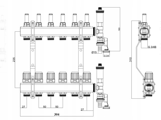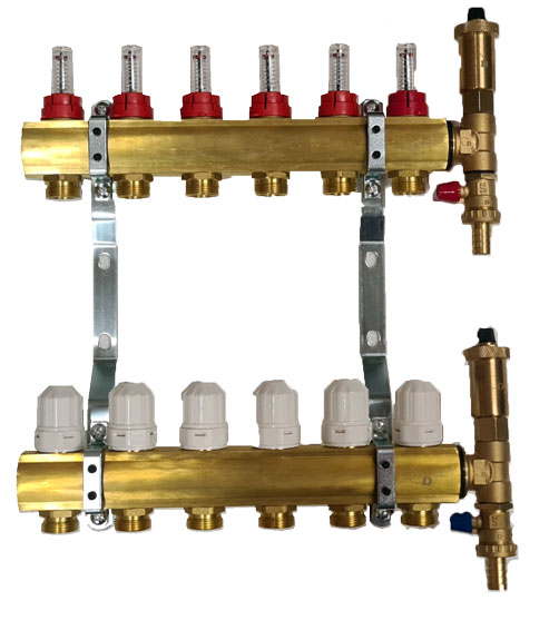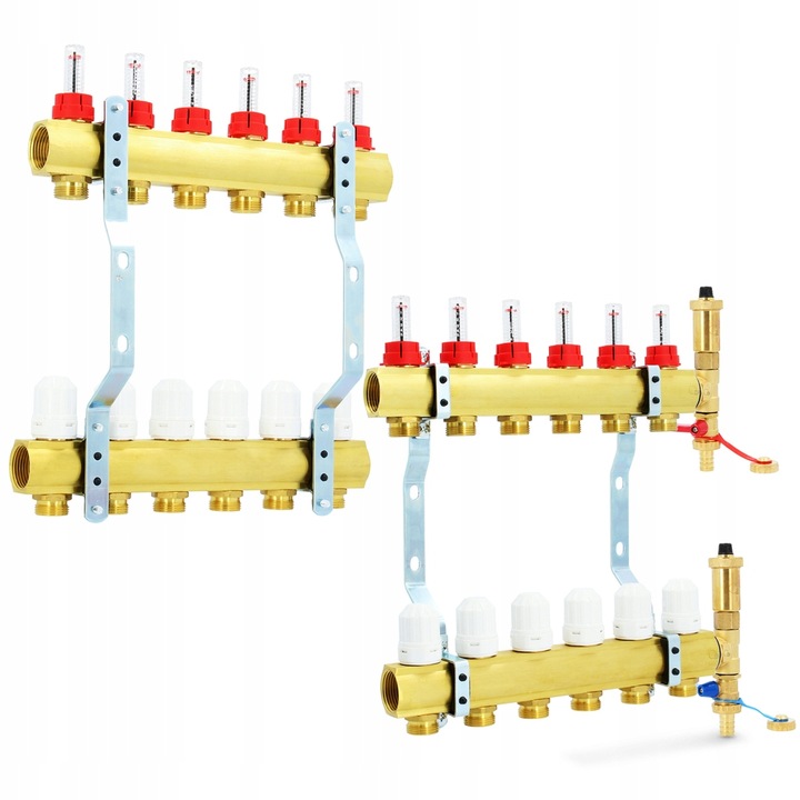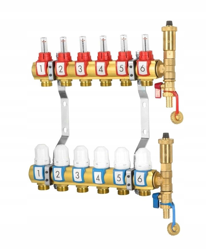 rozdzielacz dla 6-obwodów z zaworami termostatycznymi i przepłowymierzami