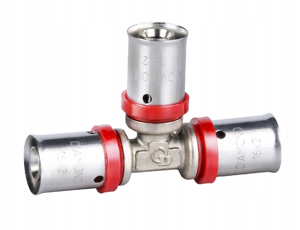 Trójnik PEX-AL-PEX 20x16x16mm zaprasowywany mosiądz Diamond