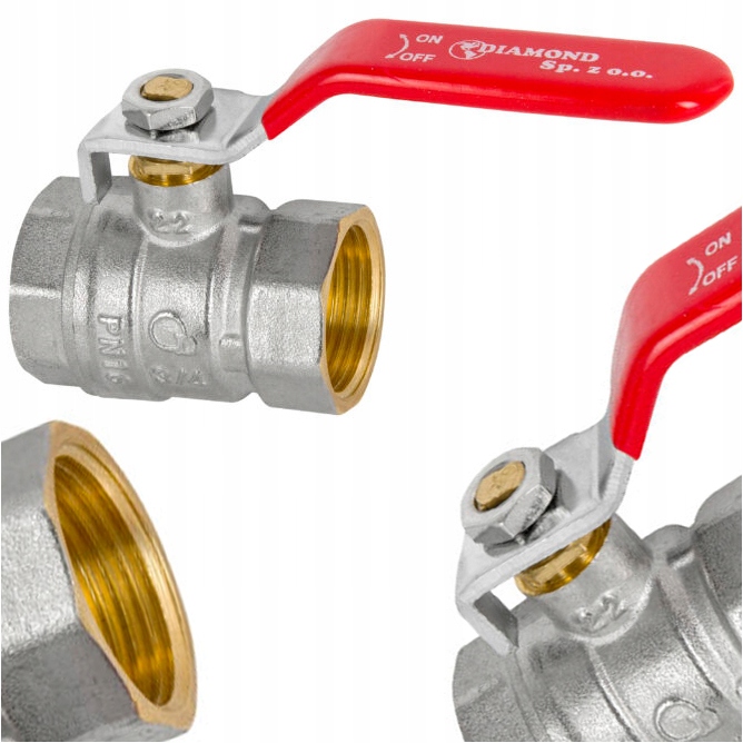 Przedmiotem oferty jest Zawór z kurkiem kulowym 1″ polskiej firmy DIAMOND. Przeznaczony jest do dystrybucji wody z instalacji wodociągowych. Wykonany jest z mosiądzu z uszczelnieniem kuli przy pomocy uszczelki z PTFE, oraz posiada dławik ze stalową rączką w kolorze czerwonym. Kurki są piaskowane, a następnie niklowane dzięki czemu charakteryzują się solidnym wykonaniem oraz trwałym oznaczeniem na korpusach.